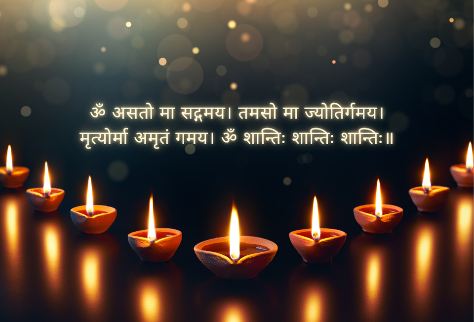 हमारे साधु-संतों और योगियो ने दीपावली को एक गहन आध्यात्मिक और सांकेतिक दृष्टिकोण से देखा। इसे केवल एक बाहरी उत्सव के रूप में नहीं, बल्कि आंतरिक चेतना की एक घटना के रूप में देखा। जैसे, बाह्य तौर पर दीपावली बुराई (रावण) पर अच्छाई (राम) की जीत, और अंधकार पर प्रकाश की जीत का प्रतीक है। उसी तरह, आत्मज्ञानी संतों ने अनुभव किया कि हमारे मन और हृदय के भीतर भी संघर्ष चलते रहता है। इसके कारण स्वार्थी इच्छाएं, लालसा, क्रोध, ईर्ष्या, अज्ञानता और अहंकार बना रहता है। यही हमारे जीवन का अंधकार है। जब हम योग साधनाओं की बदौलत अज्ञान, स्वार्थ, कामनाएँ रुपी अंधकार को मिटा देते हैं तो हमारी चेतना प्रकाशमय हो जाती है। इसलिए, बृहदारण्यक उपनिषद् में प्रार्थना की गई है कि असतो मा सद्गमय यानी असत्य से सत्य की ओर ले चलो, तमसो मा ज्योतिर्गमय यानी अंधकार से प्रकाश की ओर ले चलो और मृत्योर्मा अमृतं गमय यानी मृत्यु से अमरत्व की ओर ले चलो। यह मंत्र मानव जीवन के क्रमिक विकास यानी सत्य की खोज, ज्ञान की प्राप्ति, और अंततः मुक्ति का संदेश देता है।